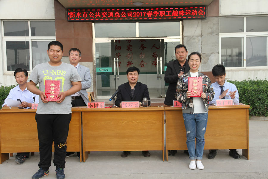為了進一步增強公司凝聚力,豐富廣大員工的業(yè)余文化生活,經(jīng)過總公司工會的精心組織,充分準備,4月25日下午,總公司在一分公司停車場成功舉辦了2017年度職工趣味運動會。來自各分公司和機關(guān)科室的近150名職工分別參加了拔河、接力滾輪胎、跳長繩、袋鼠跳、自行車慢騎、個人跳繩、斗雞、綁腿跑、乒乓球、跳棋、踢毽子等11個趣味運動項目。比賽開始前,全體人員起立,共同演唱了“衡水公交之歌”。隨后,總經(jīng)理張雙義同志宣布比賽正式開始。經(jīng)過近3個小時的激烈角逐,全體參賽職工充分發(fā)揚敢于拼搏、互幫互助、尊重比賽、尊重裁判、尊重對手的優(yōu)良風格,圓滿完成了各項比賽任務(wù),賽出了風格、賽出了水平,取得了運動成績和精神文明的雙豐收。本次比賽4個團體項目共產(chǎn)生男、女各4個團體冠軍,7個個人項目各自決出前三名。在團體項目中,一分公司男子代表隊、二分公司女子代表隊分別獲得了團體拔河比賽的男女冠軍。三分公司男子代表隊、二分公司女子代表隊分別獲得接力滾輪胎項目的男女冠軍。二分公司男子代表隊、一分公司女子代表隊分別獲得袋鼠跳接力項目的男女冠軍。二分公司男子代表隊、機關(guān)女子代表隊分別獲得團體跳長繩項目的男女冠軍。在個人項目中,機關(guān)代表隊杜波同志憑借著超強的個人平衡和騎行技術(shù)獲得了自行車慢騎個人項目的第一名;在個人跳繩比賽中,二分公司代表隊的王猛同志憑借著超快的動作獲得了第一名的好成績。在綁腿跑個人賽項目中杜波和李輝同志憑借著默契的配合獲得了第一名的好成績。在斗雞個人賽項目中陳毅同志憑借著靈活的身手和超強的體力分別獲得了第一名的好成績。在跳棋、乒乓球、踢毽子的比賽中高靜周、宋建申、谷玉分別獲得了第一名的好成績?偣救w領(lǐng)導(dǎo)班子成員在比賽現(xiàn)場為各路選手加油助威。比賽結(jié)束后,工會主席、副總經(jīng)理李海江同志主持了頒獎儀式,總公司領(lǐng)導(dǎo)為獲獎的團體和個人進行了頒獎。最后,總經(jīng)理張雙義同志作了總結(jié)發(fā)言。這次運動會上,運動員強健的體魄、頑強的毅力和高超的競技水平,給大家留下了深刻的印象;各代表隊真正賽出了風格、賽出了激情;啦啦隊熱情助威、文明加油;裁判員嚴格計時記錄,公平裁判;工作人員認真負責,辛勤工作,保證了各項賽事順利進行。通過運動會的舉辦,進一步加強了總公司精神文明和企業(yè)文化建設(shè)工作,提高了全體職工的凝聚力、向心力,將健康和積極向上的企業(yè)精神傳遞給了每位員工,凝聚起了員工的巨大力量,激勵總公司全體職工,以更加昂揚的斗志、健康的體魄積極投身到公交事業(yè)中去。