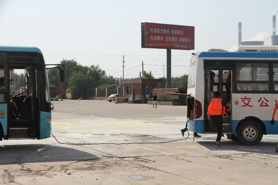 此次演練活動(dòng)由衡水市公共交通總公司承辦,市公安局經(jīng)保支隊(duì)、消防支隊(duì)、特警支隊(duì)協(xié)辦。事前各方參戰(zhàn)人員經(jīng)過精心策劃、周密籌備、結(jié)合公交實(shí)際情況,共設(shè)置了三個(gè)演練科目,分別為:一、在公交車上發(fā)生劫持乘客的反恐、防恐應(yīng)急實(shí)戰(zhàn)演練。二、純電動(dòng)公交車營運(yùn)中起火的應(yīng)急演練。三、汛期搶險(xiǎn)應(yīng)急演練。