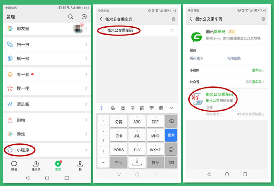 1、掃描上方二維碼或在微信小程序搜索“衡水公交乘車(chē)碼”。