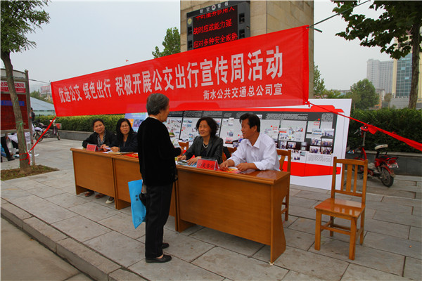活動(dòng)期間,緊緊圍繞“優(yōu)選公交、綠色出行”這個(gè)主題,結(jié)合衡水實(shí)際情況,開(kāi)展了靈活多樣的群眾性主題宣傳活動(dòng)。一、利用車載媒體及LED廣告屏播放活動(dòng)公益廣告片和宣傳語(yǔ);在候車亭、首末站牌張貼公交出行宣傳海報(bào);在火車站中心樞紐站、各大公園廣場(chǎng)等人流密集的地方設(shè)置“公交出行周”宣傳展板;在站務(wù)室、售卡中心懸掛宣傳條幅等綜合利用各種宣傳方式大力宣傳城市公共交通對(duì)保障民生、推進(jìn)節(jié)能減排、減少空氣污染、緩解城市交通擁堵的重要意義,積極引導(dǎo)市民支持和參與城市公共交通發(fā)展。二、組織辦公室、政策研究室、售卡中心、人事勞資科、營(yíng)運(yùn)服務(wù)科等相關(guān)科室在火車站中心樞紐站、各大廣場(chǎng)、大型換乘站臺(tái)等公共場(chǎng)所設(shè)立公交咨詢臺(tái),宣傳公交并解答市民關(guān)于公交IC卡優(yōu)惠政策、公交司機(jī)招聘、線路運(yùn)營(yíng)、公交政策等方面的問(wèn)題。同時(shí),制作并發(fā)放了“征求意見(jiàn)卡”,以此來(lái)廣泛征集市民對(duì)公交線路優(yōu)化、服務(wù)時(shí)間、班次密度安排、車廂衛(wèi)生狀況、司乘人員服務(wù)態(tài)度等方面的意見(jiàn)和建議,為提升公交服務(wù)質(zhì)量和乘客滿意度征集寶貴的第一手資料。三、加強(qiáng)輿論宣傳報(bào)道。活動(dòng)期間邀請(qǐng)衡水廣播電視臺(tái)、衡水交通廣播臺(tái)等新聞媒體的記者同志們到現(xiàn)場(chǎng)實(shí)地報(bào)道“公交出行宣傳周”活動(dòng)實(shí)施情況。通過(guò)各種新聞媒體報(bào)道,為“優(yōu)先發(fā)展城市公交”營(yíng)造良好輿論氛圍。四、結(jié)合“百日優(yōu)服競(jìng)賽”“衡水湖馬拉松比賽用車優(yōu)服培訓(xùn)”等活動(dòng),積極開(kāi)展形式多樣的服務(wù)質(zhì)量、服務(wù)技能競(jìng)賽和崗位練兵活動(dòng)。