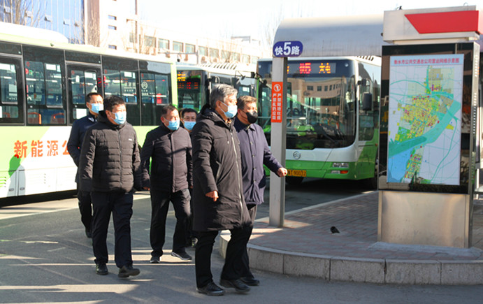 1月8日上午,副市長王世昆、副秘書長宋鴻杰等領(lǐng)導(dǎo)一行到火車站公交樞紐站檢查指導(dǎo)疫情防控工作。市交通運輸局局長張峰,市公交總公司總經(jīng)理張雙義及班子陪同。