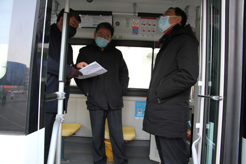 1月11日下午,局黨組成員、副局長于立東、紀委駐局紀檢組長商福興帶領(lǐng)黨委辦主任李志杰、駐局紀檢監(jiān)察組一級主任科員劉秀元組成檢查組,先后對火車站公交樞紐站、站務(wù)室、各分公司停車場、18路終點站等重點區(qū)域的疫情防控工作進行了檢查指導(dǎo)。公交總公司總經(jīng)理張雙義及相關(guān)部門負責(zé)同志陪同。