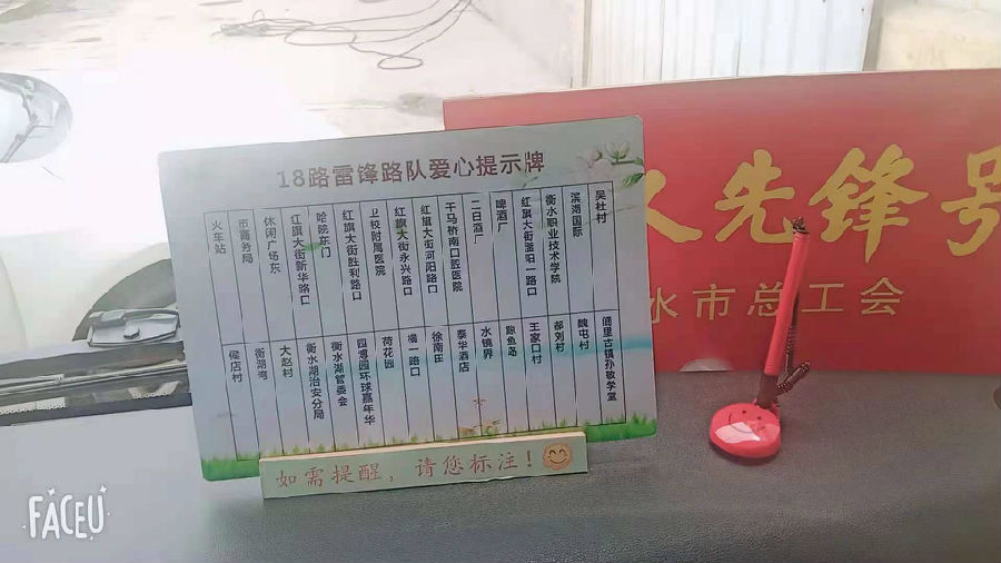 為防止乘客坐過站,他們精心設(shè)計了“下車溫馨提示牌”和 “到站提示卡”。為防止乘客雨天上下車摔倒,他們在前后門臺階處放置了“愛心防滑腳墊”。為滿足乘客臨時需求,他們在工作臺上設(shè)置了“雷鋒服務(wù)包”,里面裝有一次性口杯、針線包、暈車藥、塑料袋和創(chuàng)可貼等便民物品。夏天為乘客準(zhǔn)備了便民小扇子,冬天為老弱病殘孕等特殊群體配備了棉坐墊。車廂內(nèi)還備有便民雨傘、一次性雨衣、應(yīng)急口罩等物品。為提升車廂文化,他們還放置了一個閱讀書架,上面擺放著他們自制的“衡水公交18路風(fēng)采”等書畫資料。