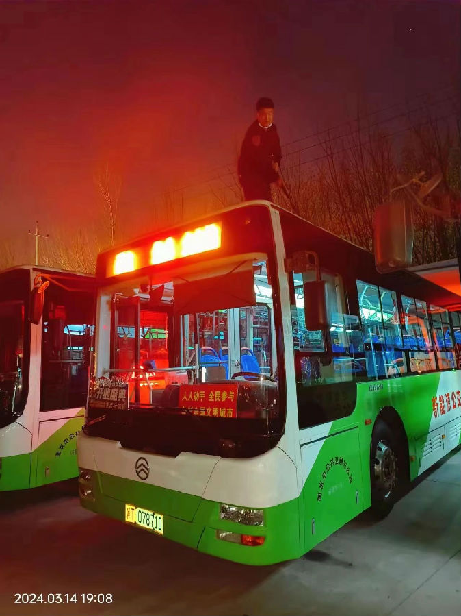 加強公交站亭巡查維護及公交車輛保潔力度,及時發(fā)現(xiàn)并維護站亭設施、清理小廣告等問題;運營中“半趟一巡視,一趟一清理”,保持公交車輛內、外環(huán)境整潔。為乘客提供舒適整潔的候車、乘車環(huán)境。