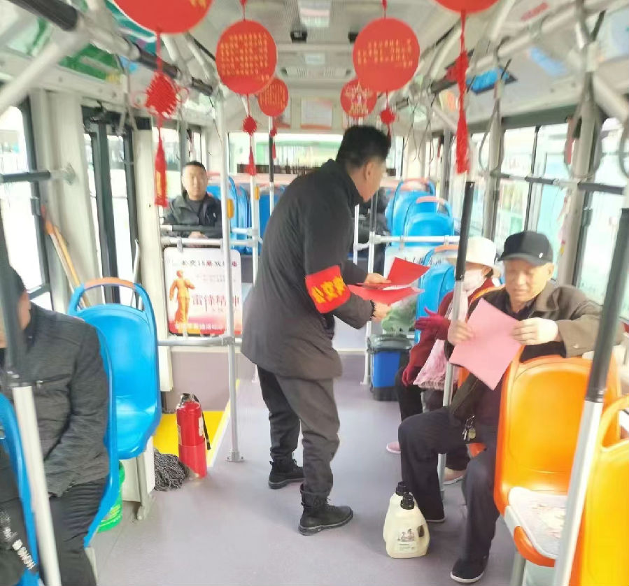 積極宣傳“文明交通綠色出行”行動,以發(fā)放宣傳單的形式,倡導文明健康綠色環(huán)保生活方式,引導乘客文明乘車,乘車過程中主動為老、弱、病、殘、孕及懷抱嬰兒者讓座。