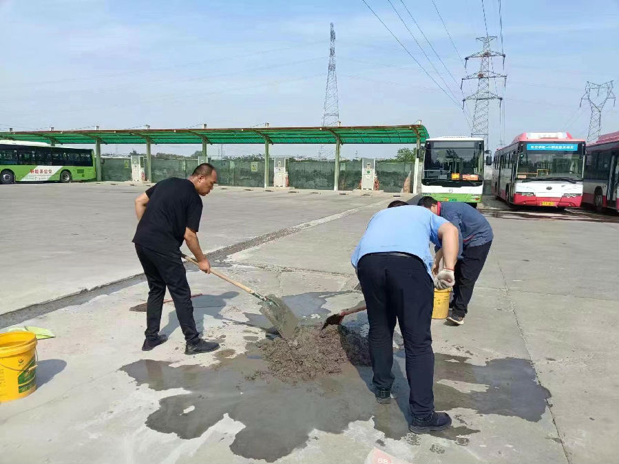 公交場站安全隱患再消除。堅(jiān)決執(zhí)行停車場禁煙管理制度,重點(diǎn)對維修車間、值班室、庫房及配電室、充電樁等重點(diǎn)區(qū)域進(jìn)行了楊柳絮大清除;對充電樁進(jìn)行了維護(hù)保養(yǎng);加強(qiáng)安全充電監(jiān)管力度,做到人走斷電。此外,對車場地面及樓道口門臺進(jìn)行維修,抓好安全生產(chǎn),消除安全隱患,保障車輛正常進(jìn)出場站。